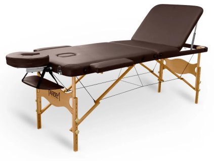 Skládací masážní stůl TANDEM Profi W3D v čokoládové barvě má řeznou ránu na čalounění. Poškození je vidět v galerii na přiložených detailních fotografiích.