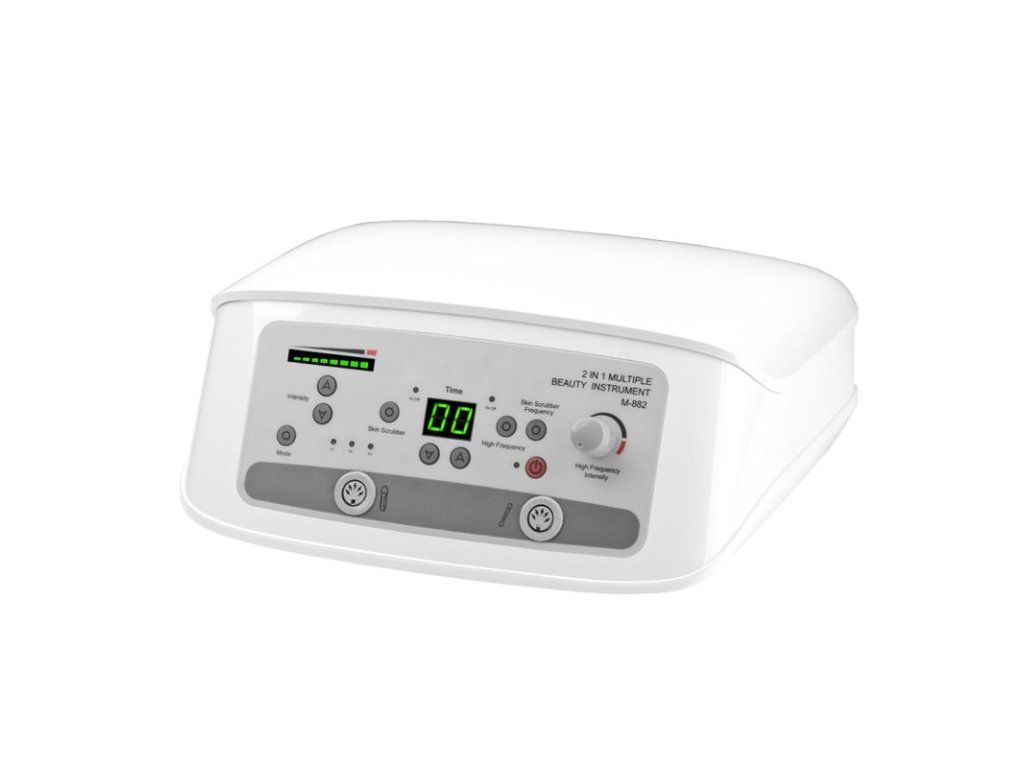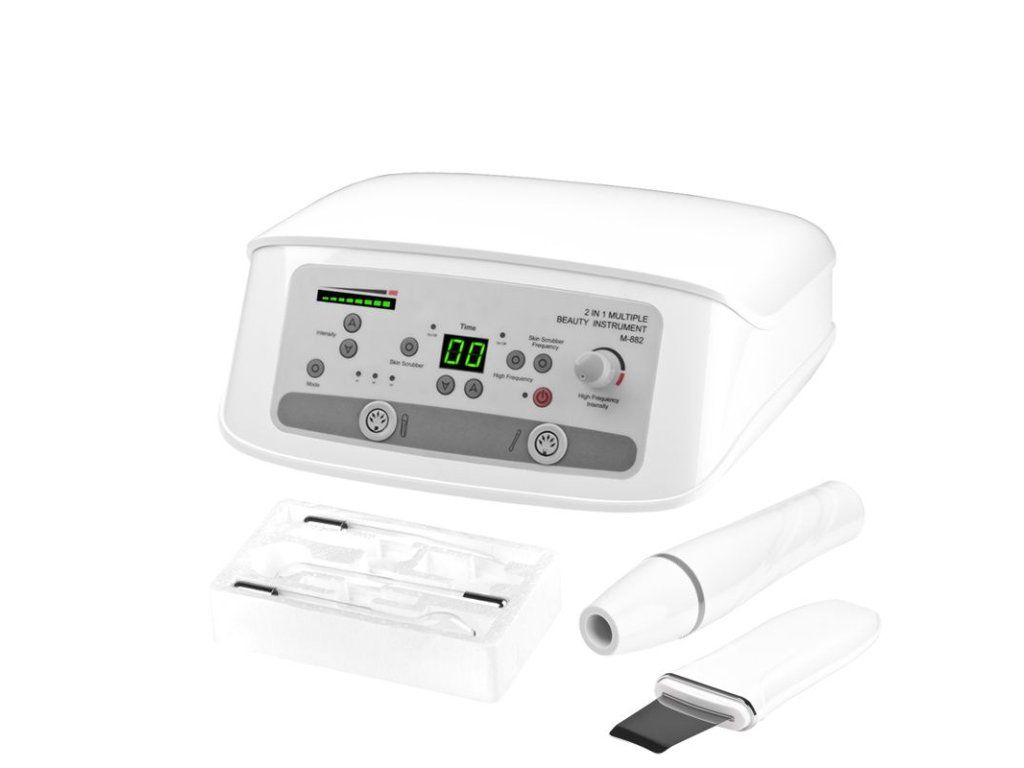 Spolehlivý kosmetický přístroj Elegante 882 je vhodný do profesionálních kosmetických salónů. Disponuje dvěma funkcemi - ozonizérem a ultrazvukovou špachtlí, které jsou užitečné při několika kosmetických procedurách.