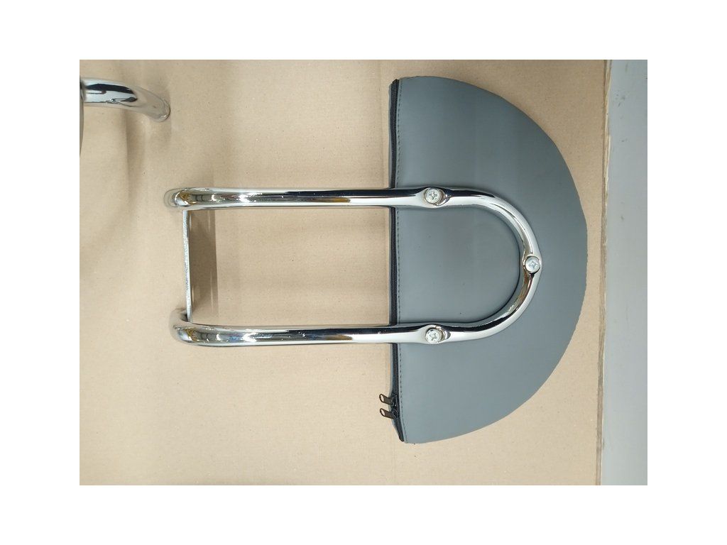 Sedlová kosmetická židle s opěradlem BeautyOne v šedé barvě má drobná poškození konstrukce a poškozenou textilii na spodní straně sedadla. Poškození je vidět v galerii na přiložených detailních fotografiích.