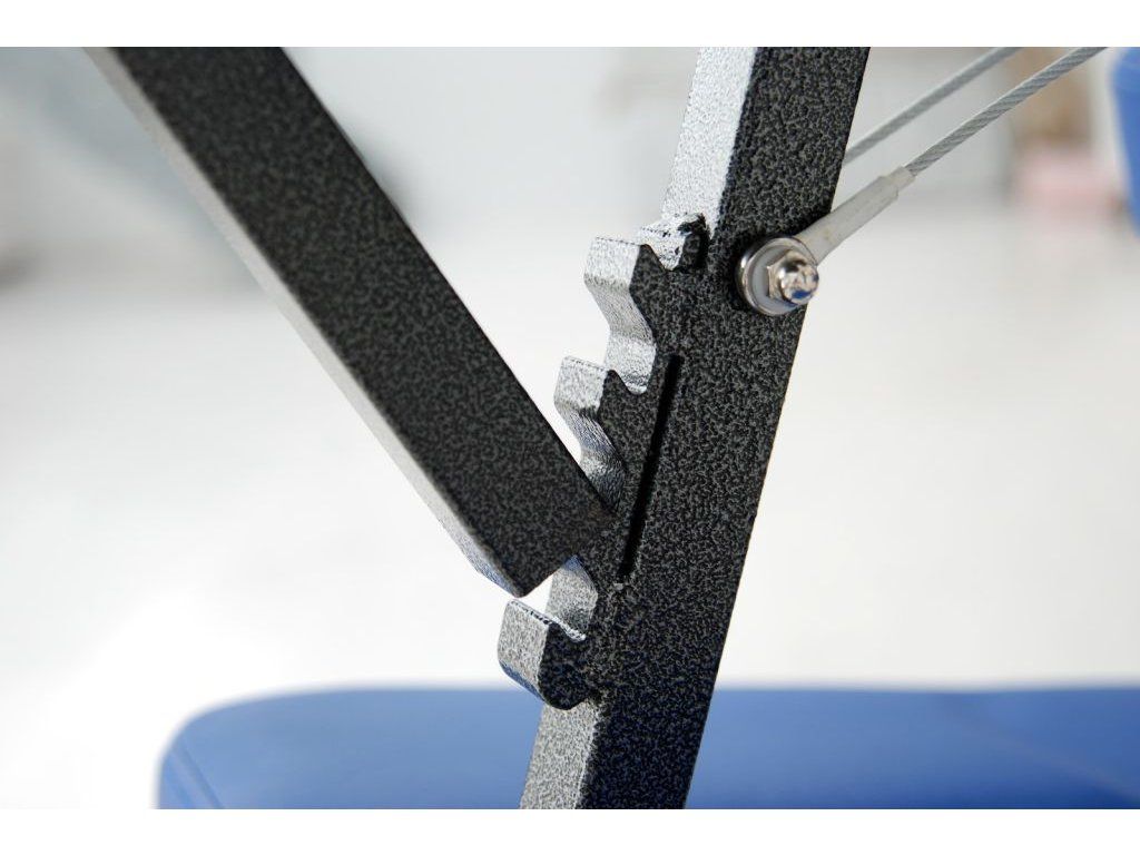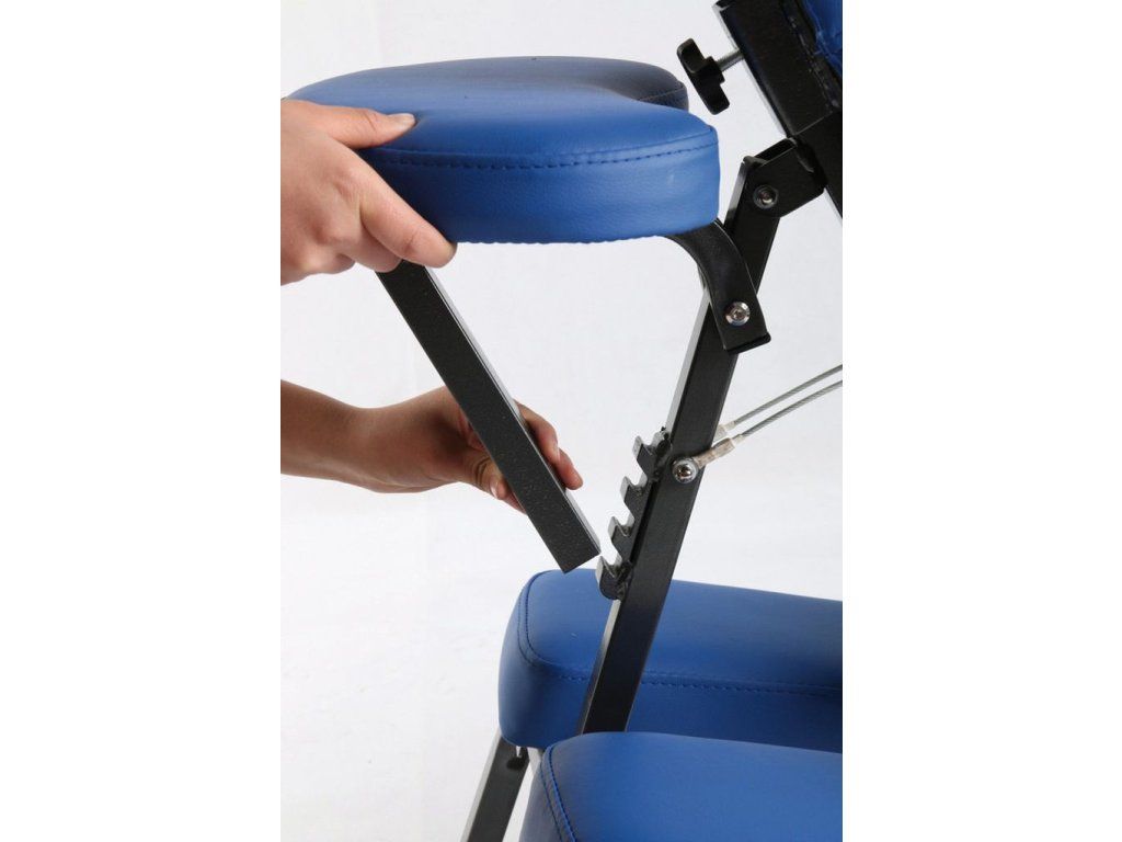 Skládací masážní židle Sissel má pevný a stabilní kovový rám. Opěrky na hlavu, ruce a hrudník jsou nastavitelné pro maximální komfort klienta.