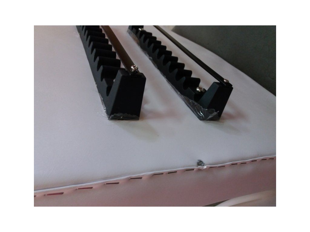 Kosmetické lehátko BeautyOne Cosmo v bílé barvě má prasklou překližku na rohu sedáku ( je nutná oprava!), škrábance na konstrukci a drobné poranění čalounění na zadní straně křesla. Poškození je vidět v galerii na přiložených detailních fotografiích.