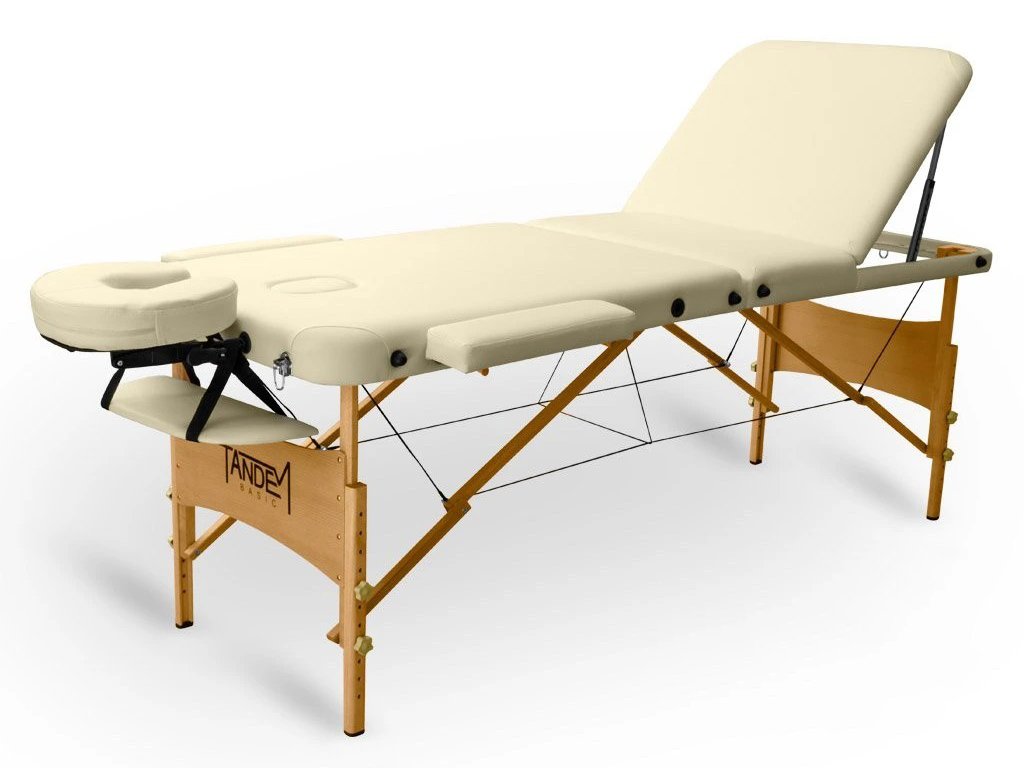 Třídílný masážní stůl Tandem Basic-3 je vyroben z tvrdého lisovaného bukového dřeva a zvedací třetí část ho dělá ideálním i pro masáž chodidel.