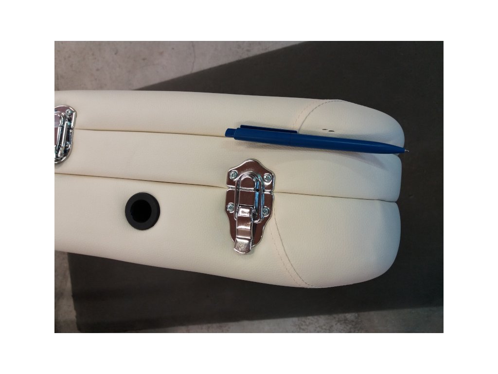 Skládací masážní stůl TANDEM Basic-3 v krémové barvě má drobné poranění na zvedací části. Poškození je vidět v galerii na přiložených detailních fotografiích.