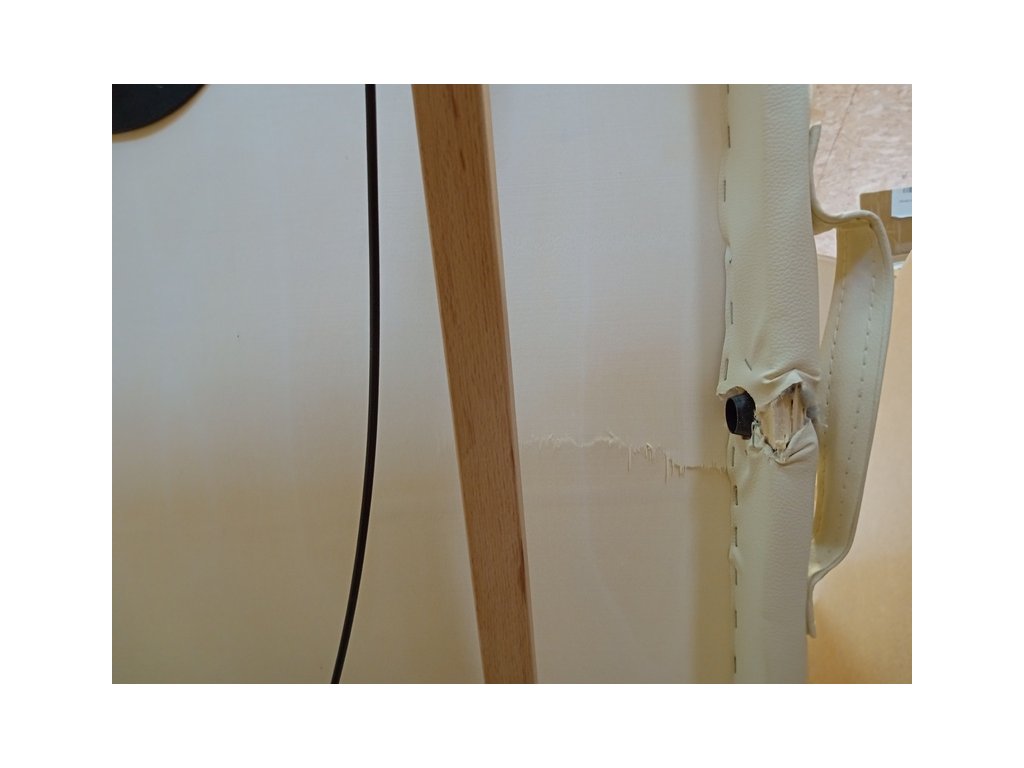 Skládací masážní stůl TANDEM Basic-2 v krémové barvě má zlomenou konstrukci. Pro použití je nutná oprava! Poškození je vidět v galerii na přiložených detailních fotografiích.