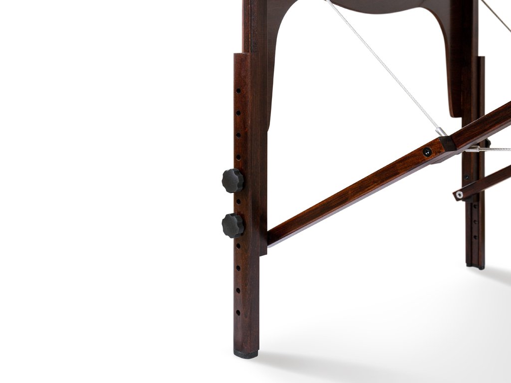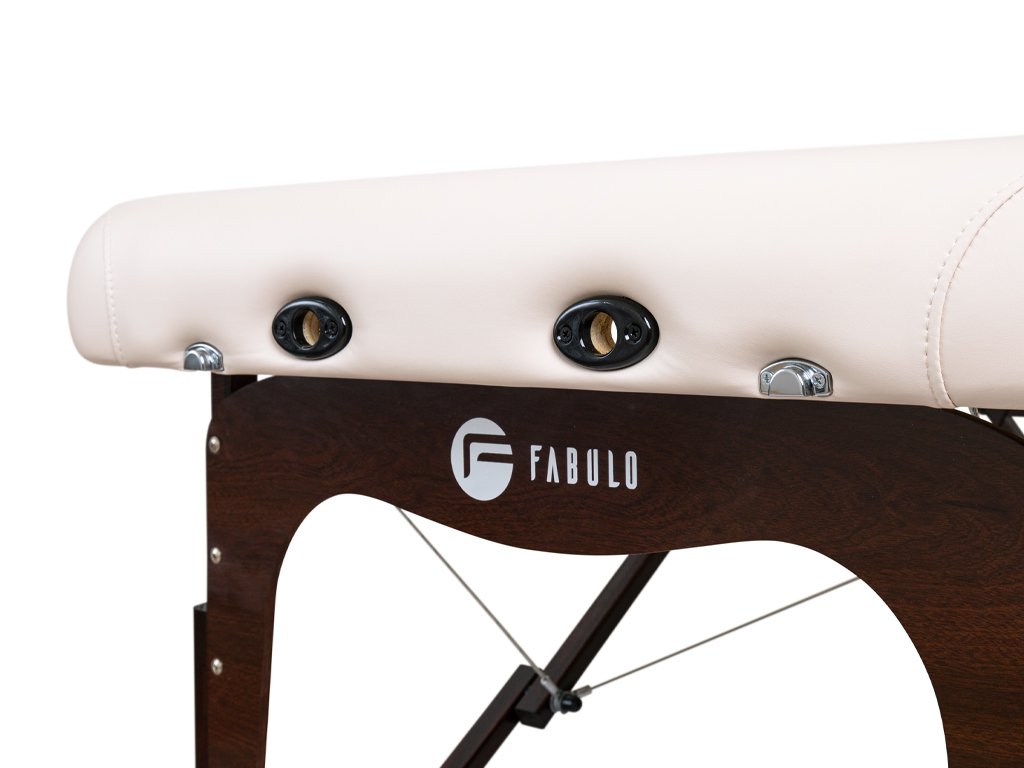 Masážní stůl Fabulo Diablo Set je je vyroben z kvalitního tvrdého bukového dřeva první třídy s vícevrstvým lakováním pro delší trvanlivost. Maximální stabilitu lehátka zajišťují nadstandardně silné příčné panely, čímž se předchází kolísání stolu během masáže. Fabulo Diablo Set s oválným reiki panelem nabízí volný prostor mezi nohama a umožňuje pohodlné sezení maséra. Nadstandardní kvalitu masážního stolu zajišťují i speciálně frézované nohy stolu pro zvýšení stability, pevné protiskluzové pryžové ochrany nohou a ergonomické pogumované šrouby. (Levná lehátka jsou obvykle vyráběna s plastovými nohami, které snadno kloužou na podlaze a s plastovými šrouby, které se uvolňují během masáže a zapříčiňují nestabilitu stolu.)