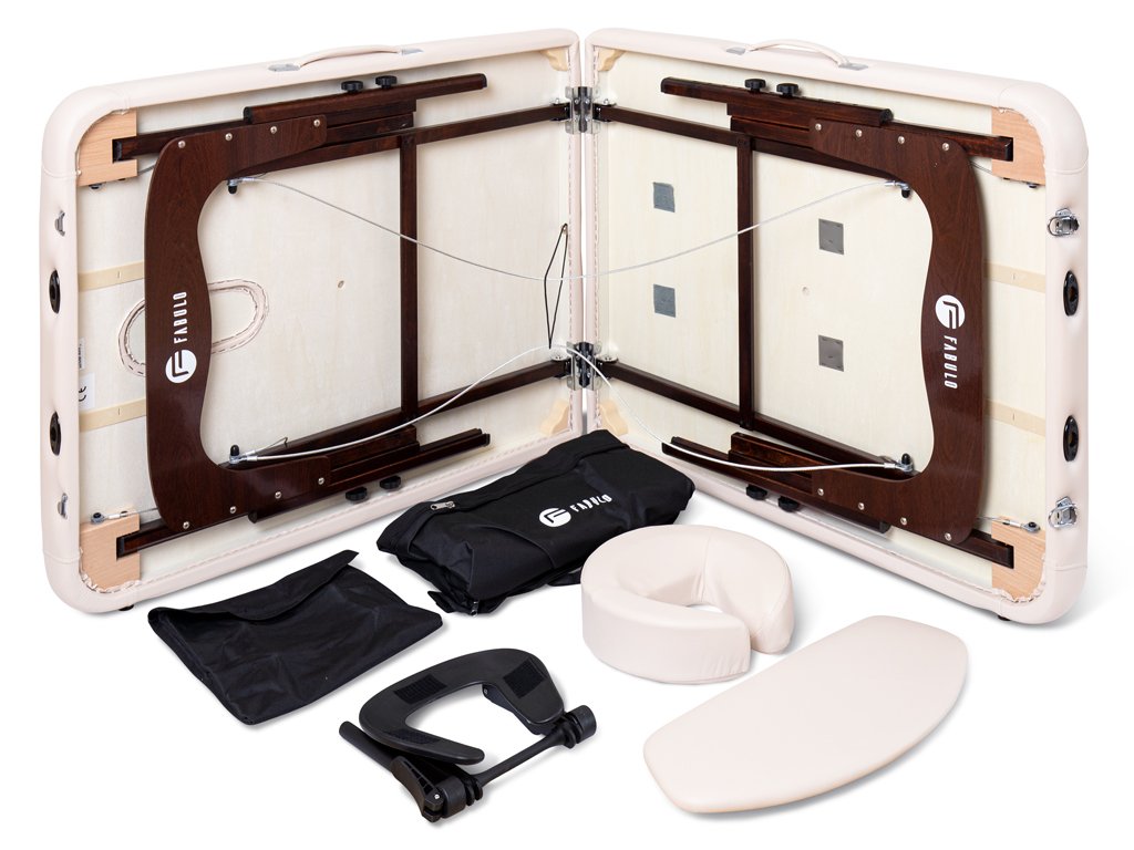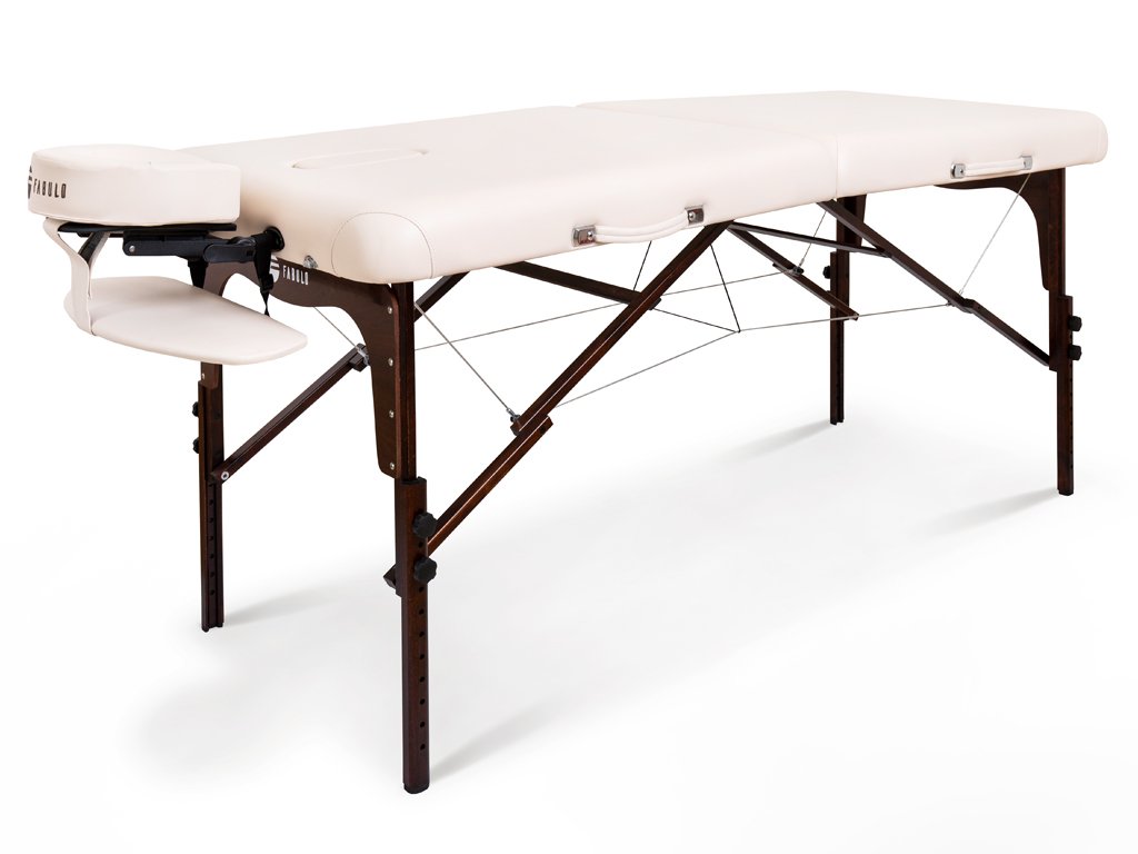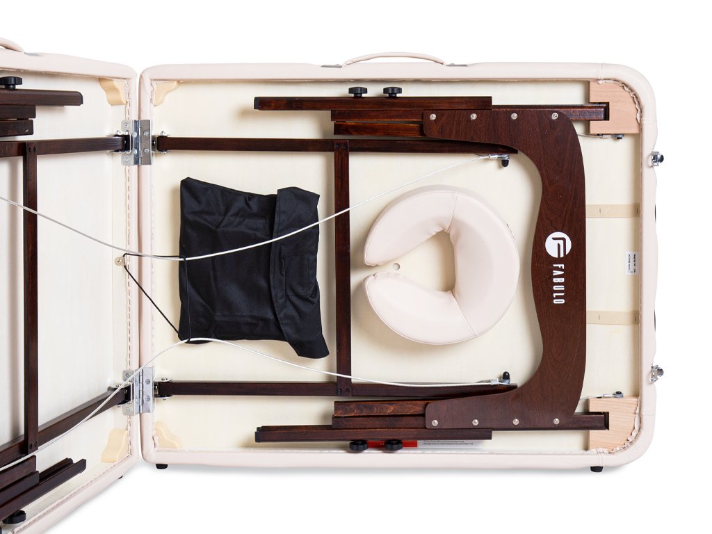 Profesionální dřevěné dvoudílné skládací masážní lehátko Fabulo Diablo Set je určeno především masérům, fyzioterapeutům a pracovníkům v oblasti beauty a wellness průmyslu. Přestože je masážní lehátko skládací, díky jeho stabilitě ho vřele doporučujeme i jako stabilní vybavení masážních salonů. Přenosné masážní lehátko Fabulo Diablo Set je velmi praktické, systém lanek zajišťuje jeho rychlé složení a rozložení, proto je vhodné pro maséry, kteří pravidelně cestují za zákazníky. Masážní lehátko dodáváme spolu s příslušenstvím, které lze uschovat uvnitř lehátka.