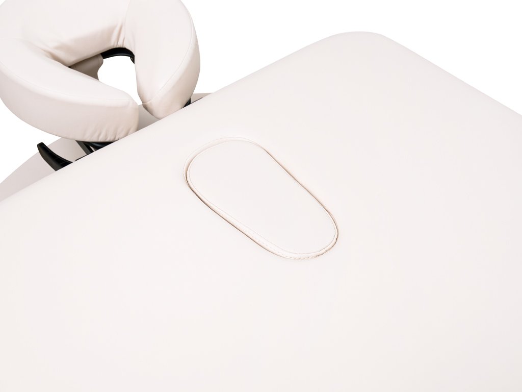 - Masážní lehátko je vybaveno otvorem na obličej, tím je zajištěno příjemné uložení hlavy. Tento otvor se otevírá jednoduše, a to vytažením zátky.