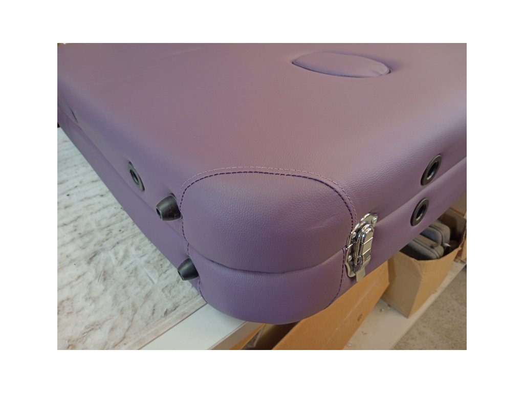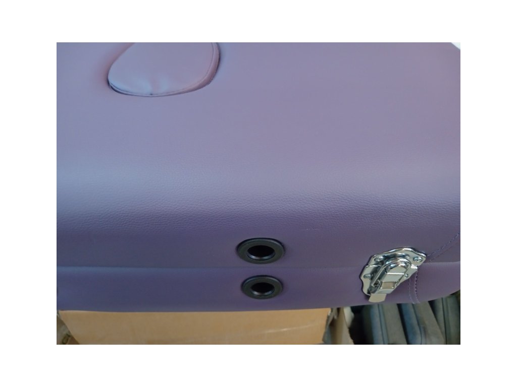 Skládací masážní stůl TANDEM Basic-2 v fialové barvě má poškozené čalounění a prasklou překližku. Pro použití je nutná oprava!! Poškození je vidět v galerii na přiložených detailních fotografiích.