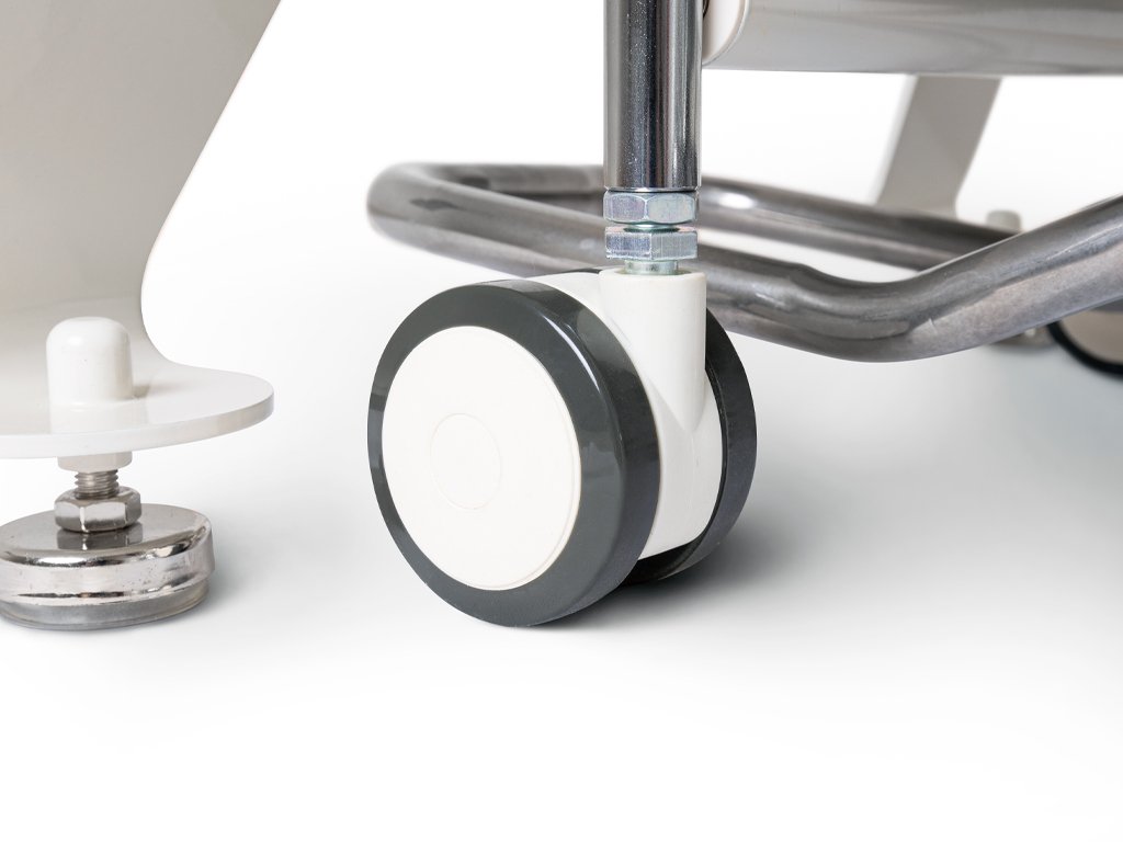 Lehátko je vybaveno i nastavitelnými područkami a otvorem na obličej se zátkou. Přesouvání lehátka usnadňují kolečka, která se snadno vysouvají a zasouvají pomocí pedálové páky.