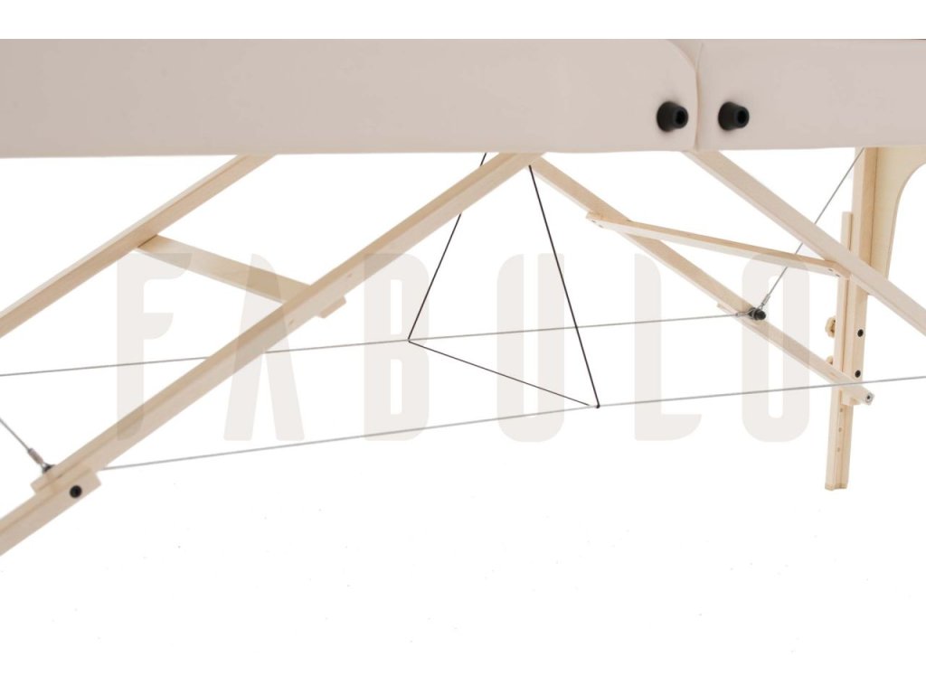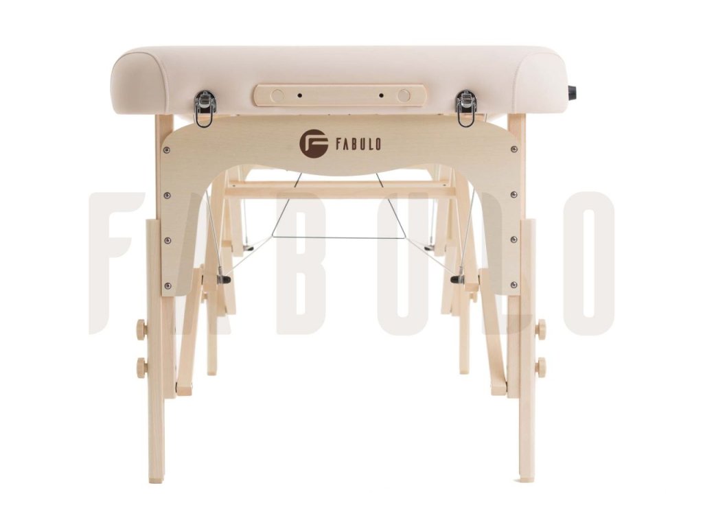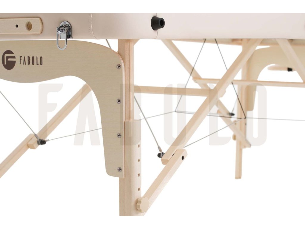 Masážní stůl Fabulo GURU Set je je vyroben z kvalitního tvrdého bukového dřeva první třídy s vícevrstvým lakováním pro delší trvanlivost. Maximální stabilitu lehátka zajišťují nadstandardně silné příčné panely, čímž se předchází kolísání stolu během masáže. Fabulo Guru Set s oválným reiki panelem nabízí volný prostor mezi nohama a umožňuje pohodlné sezení maséra. Nadstandardní kvalitu masážního stolu zajišťují i speciálně frézované nohy stolu pro zvýšení stability, pevné protiskluzové pryžové ochrany nohou a ergonomické pogumované šrouby. (Levná lehátka jsou obvykle vyráběna s plastovými nohami, které snadno kloužou na podlaze a s plastovými šrouby, které se uvolňují během masáže a zapříčiňují nestabilitu stolu.)