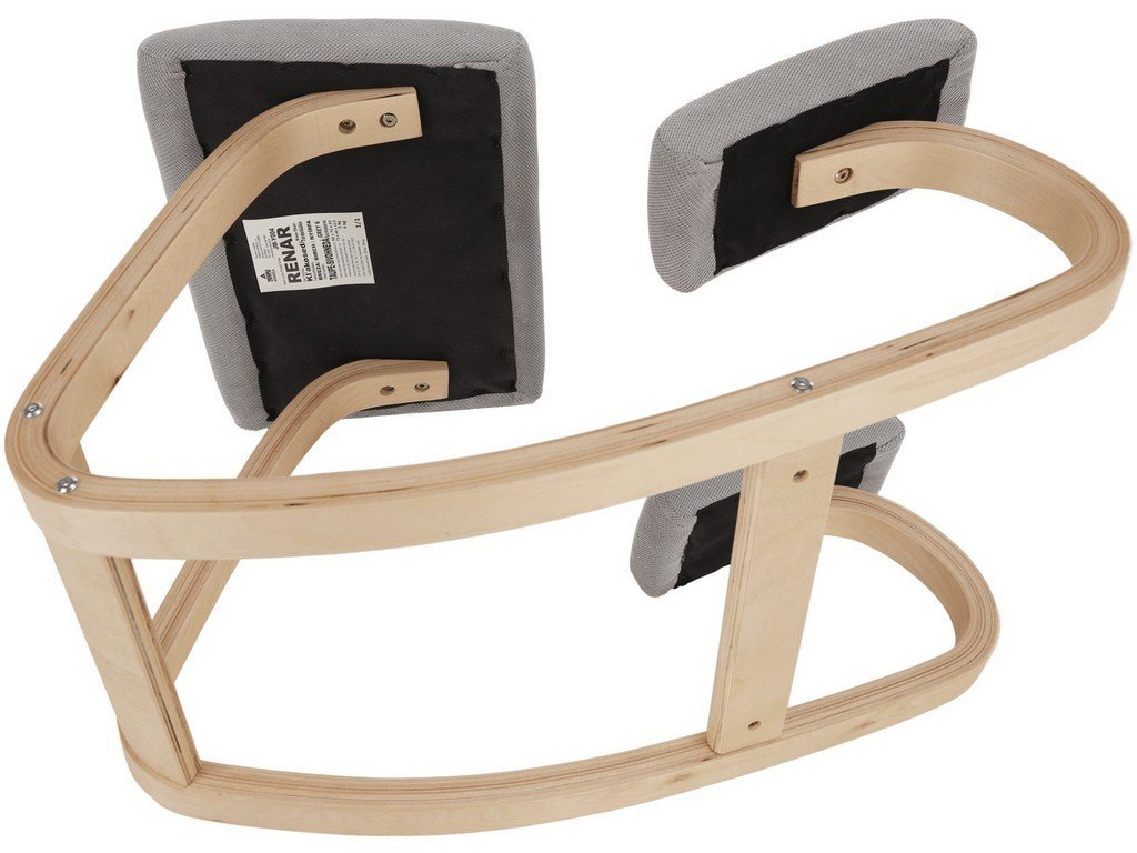 Balanční klekačka RENAR se speciálně zakřivenou dřevěnou konstrukcí podporuje správné držení těla při sezení, díky čemuž lze předejít nebo zmírnit bolesti v oblasti páteře a zabránit brnění končetin.