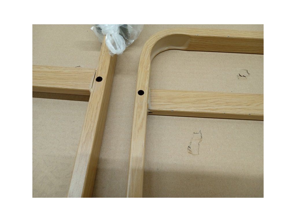 Kosmetický stolek BeautyOne HS09 má odřený lak na konstrukci. Poškození je vidět v galerii na přiložených detailních fotografiích.