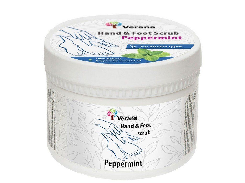 Peeling na ruce a nohy Verana Máta odstraňuje odumřelé kožní buňky a zároveň pokožku vyživuje, hydratuje a regeneruje. Jednou z účinných složek je esenciální olej z máty, který obsahuje přírodní mentol, pestrou paletu vitamínů, minerálů a stopových prvků.